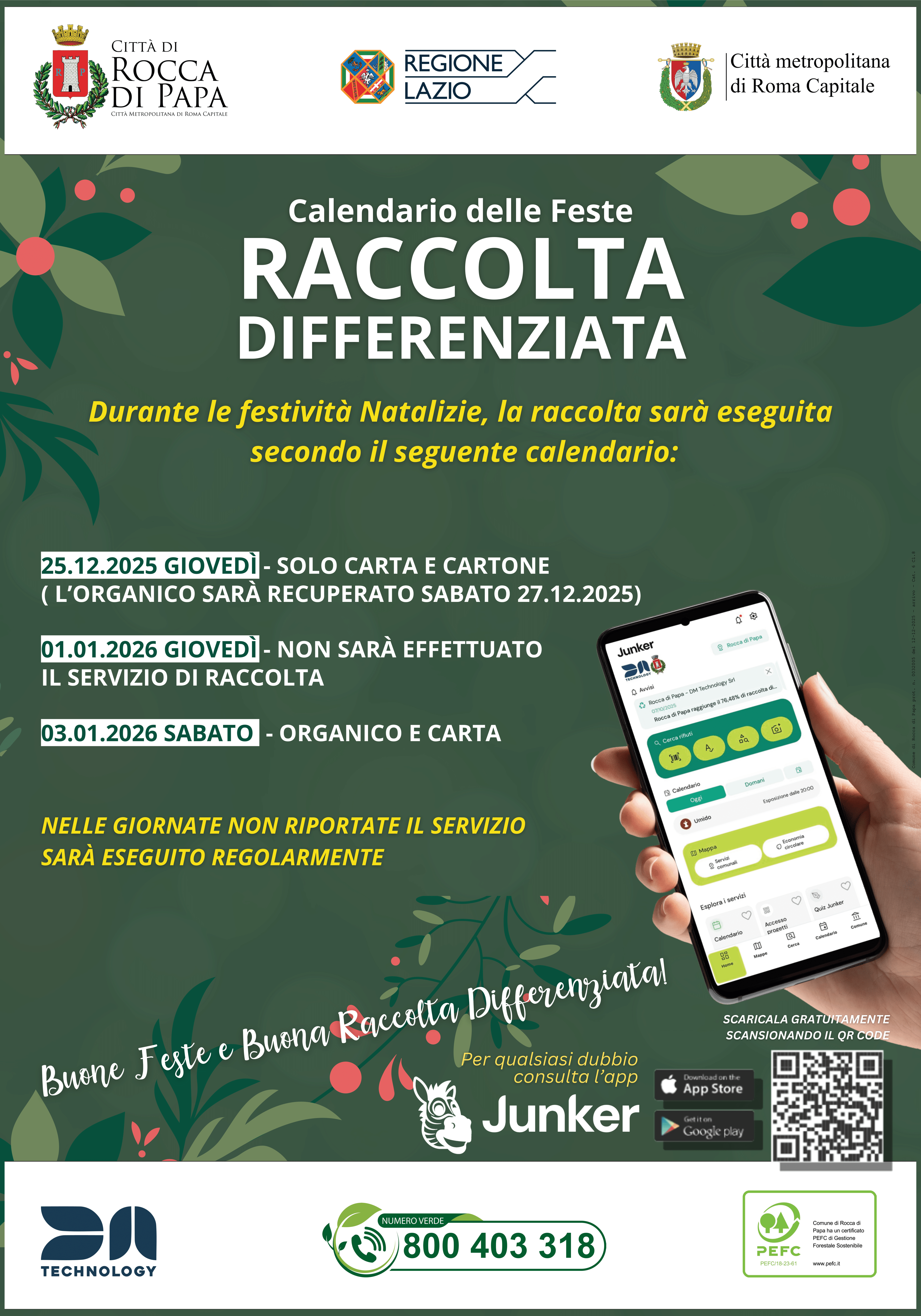 CALENDARIO RACCOLTA DIFFERENZIATA FESTIVITA’ NATALIZIE