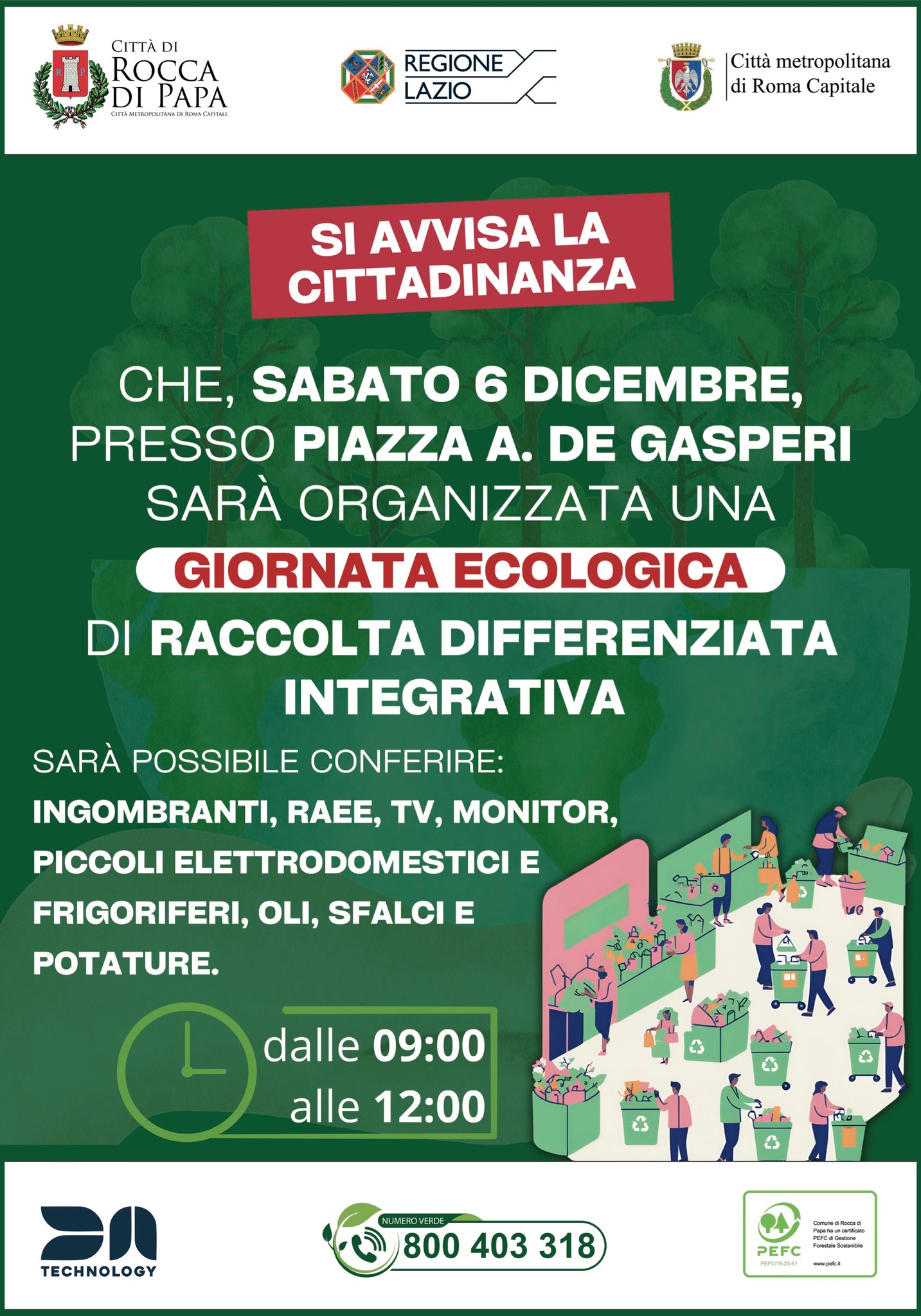 GIORNATA ECOLOGICA – 6 DICEMBRE – PIAZZA ALCIDE DE GASPERI